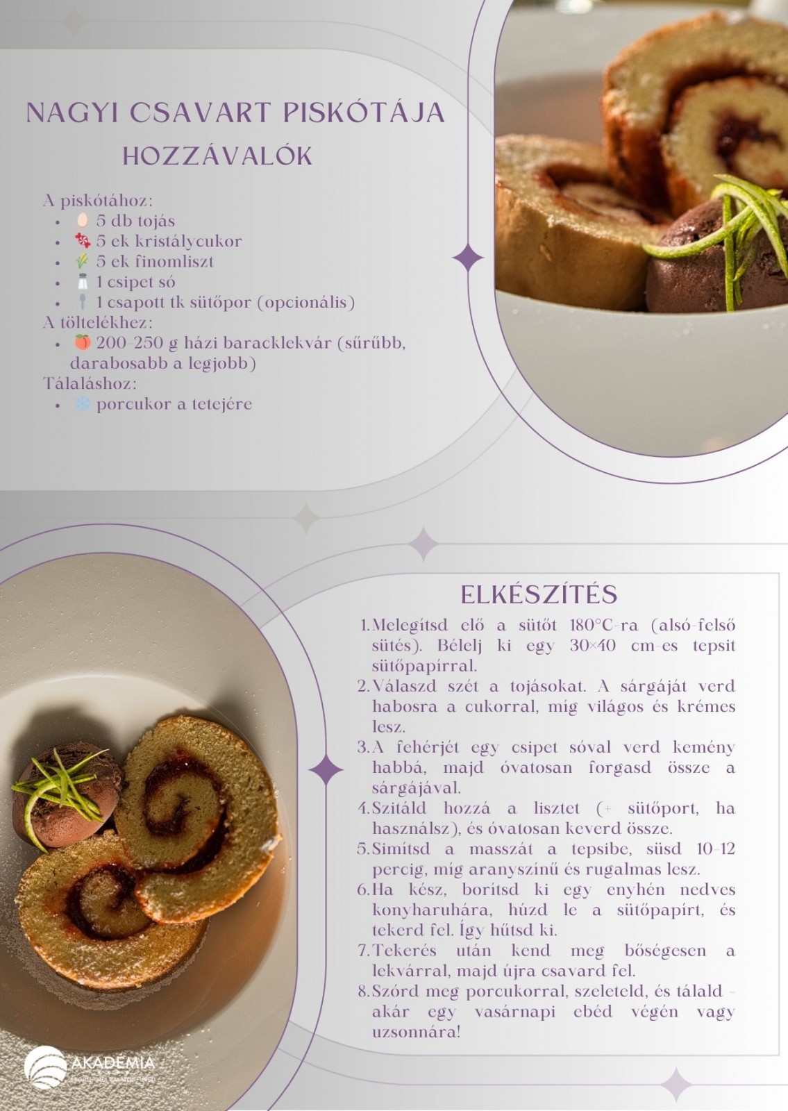 A piskótatekercs titka nemcsak a hozzávalók egyszerűségében rejlik, hanem az elkészítés módjában is. Mivel Tatai séf is egyetért abban, hogy a piskótatekercsnek lelke van, nem csoda, hogy ez a recept igazi klasszikus. A friss tojás, a házi baracklekvár, és persze a megfelelő technika teszik felejthetetlenné.
