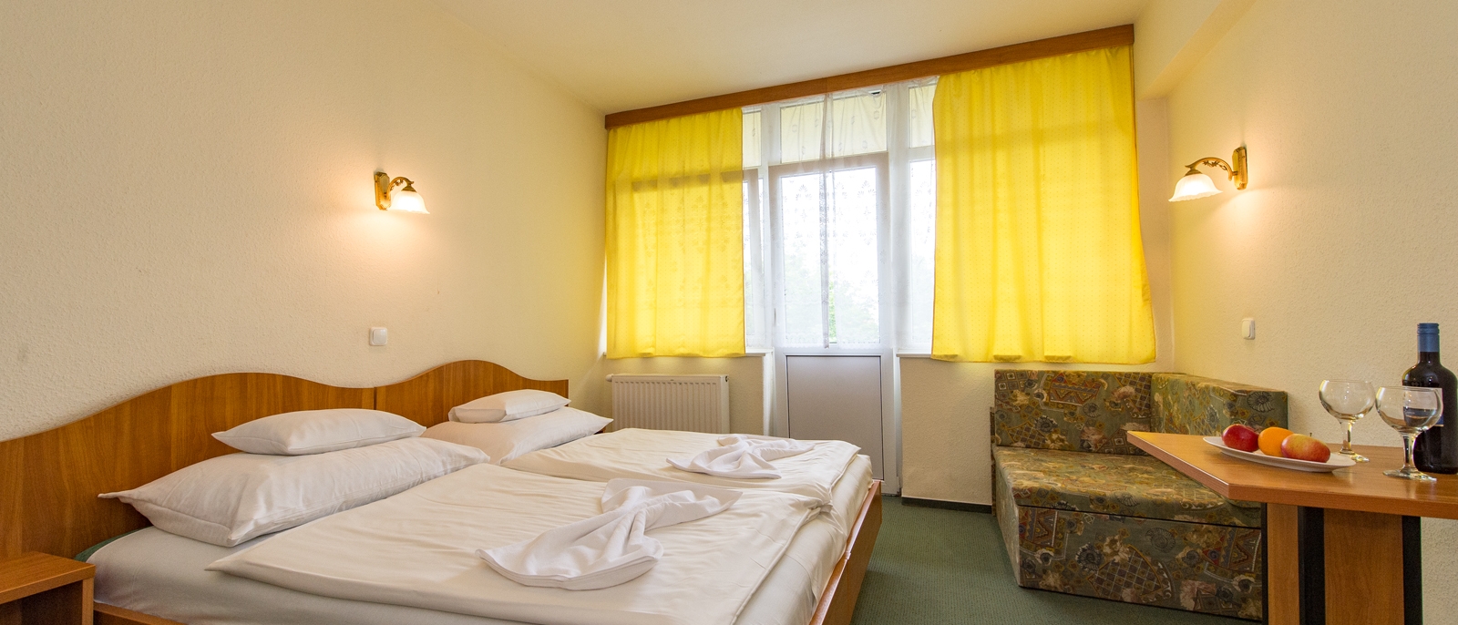 A szálloda 28 db pótágyazható kétágyas szobával rendelkezik. A pótágyak fotelágyak, melyeket gyermekek részére ajánlunk. A szobákban 1 vagy maximum 2 db pótágy található.