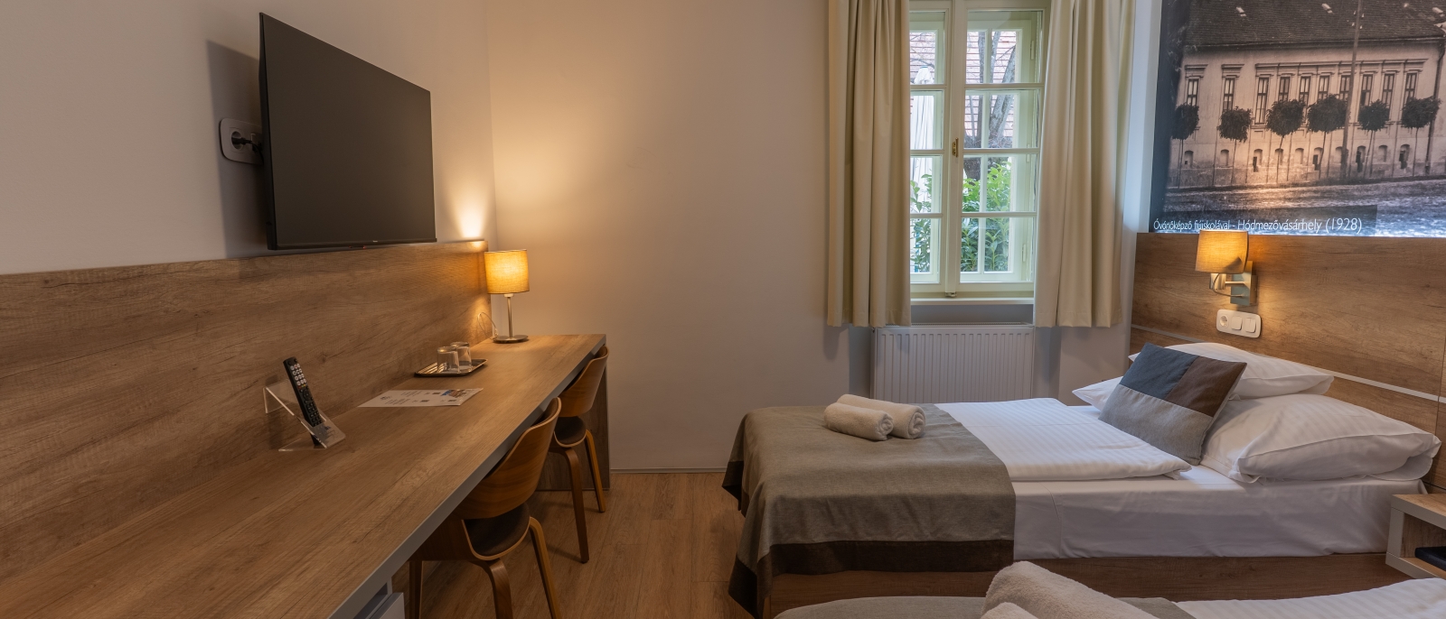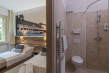 Kétágyas szoba 2 db különálló ággyal, igény szerint összetolható, zuhanyozós fürdőszoba