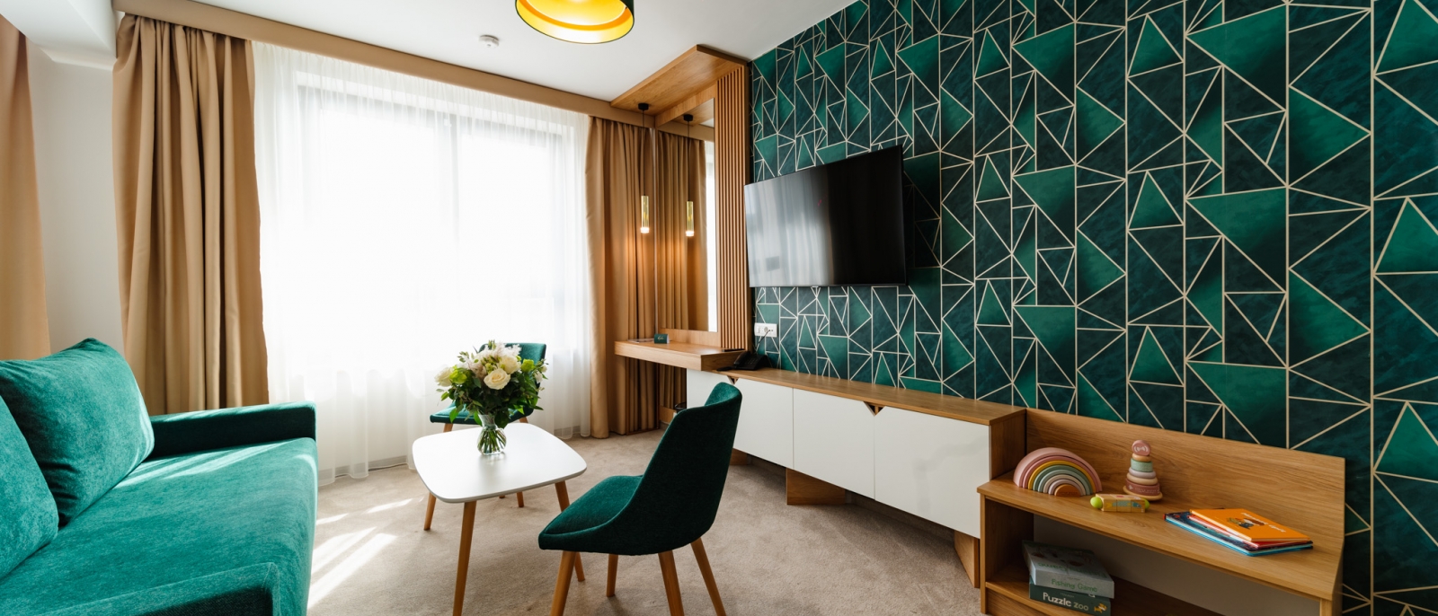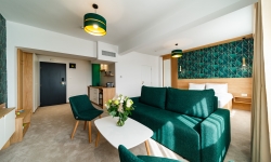 Szállodánk 4-5. szintjén helyezkednek el junior lakosztályaink, magas színvonalú kényelmet és extra szolgáltatásokat biztosítva. A szobák felszereltsége: telefon, Smart TV műholdas csatornákkal és kábelcsatornákkal, széf, minibár, kapszulás kávéfőző, ásványvíz, boros pohár, dugóhúzó, légkondicionáló, íróasztal, ruhásszekrény, extra párna, vasalási lehetőség. A szobákhoz tartozó saját fürdőszobában zuhanyzó, hajszárító, piperecikkek (szappan, tusfürdő, sampon, zuhanysapka, fogkefe, fogkrém, cipőfényező, varró-szett) és törölköző áll a vendégek rendelkezésére. Ezekben a szobákban kanapé nyújt extra kényelmet. Pótágyként 2 gyermek vagy 1 felnőtt számára biztosít elhelyezést.
