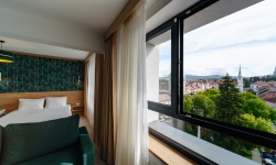 40 négyzetméteres franciaágyas lakosztály kilátással a városra