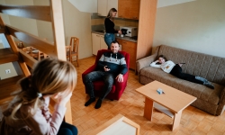 Tágas és kényelmesen berendezett apartmanok terasszal vagy erkéllyel.