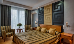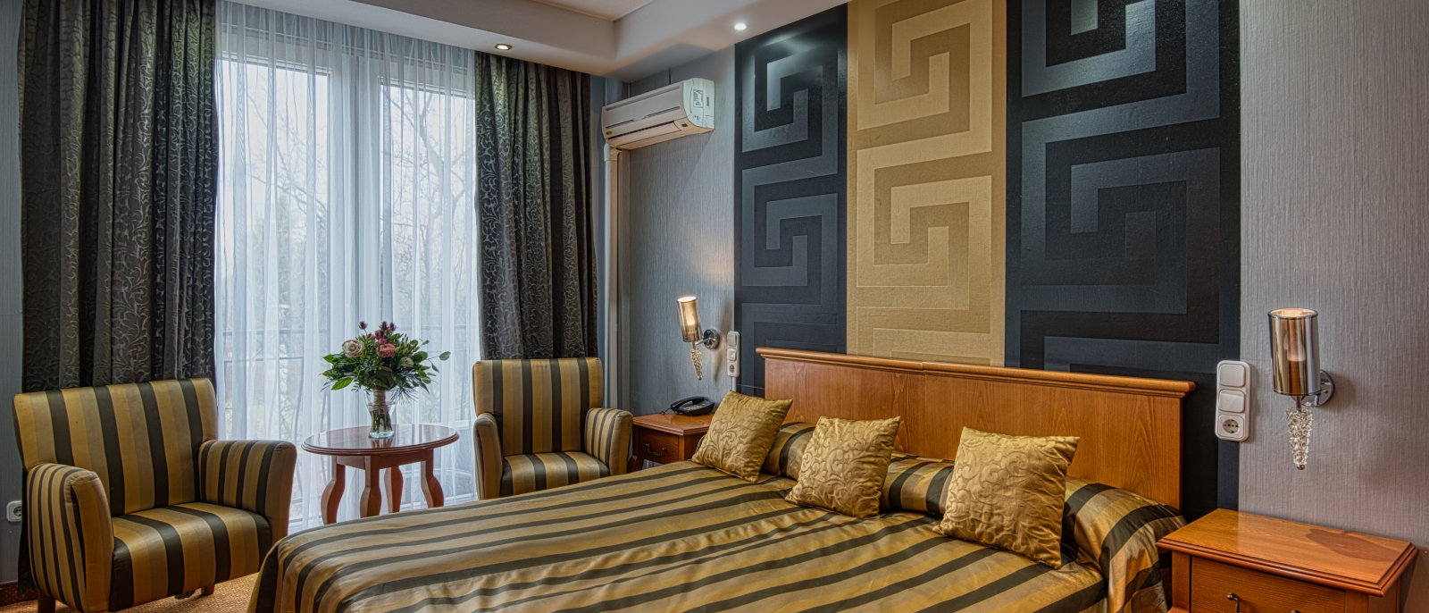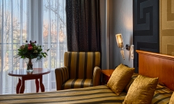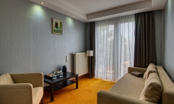 Fürdőkádas kialakítású fürdőszoba, hajszárító és fürdőköntös bekészítés, egyedileg állítható klíma berendezés, mini-bár, számítógép csatlakozási lehetőség, valamint televízió várja a szobába lépő vendégeinket. Baráti társaságban wellness pihenésre érkezőknek kiváló választás az akár 3 fő elhelyezésére alkalmas 2 szobás Suite, mely 2 különálló szobával (hálószoba, nappali kanapéval) és közös fürdőszobával rendelkezik.