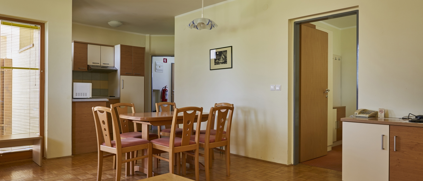 Tágas és kényelmesen berendezett apartmanok terasszal vagy erkéllyel.