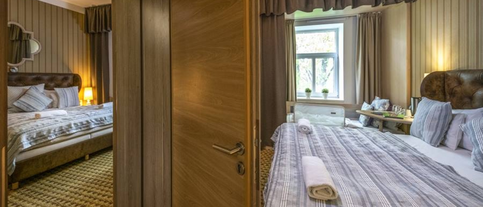 Szállodánk duplakomfortos lakosztályaiban az egész család együtt pihenhet, mégis mindenkinek megvan a személyes tere és szabadsága! Két fürdőszobával rendelkező, két légterű lakosztályokká válnak egybenyitott pótágyas standard szobáink, hogy otthonos teret biztosítsanak családjának.