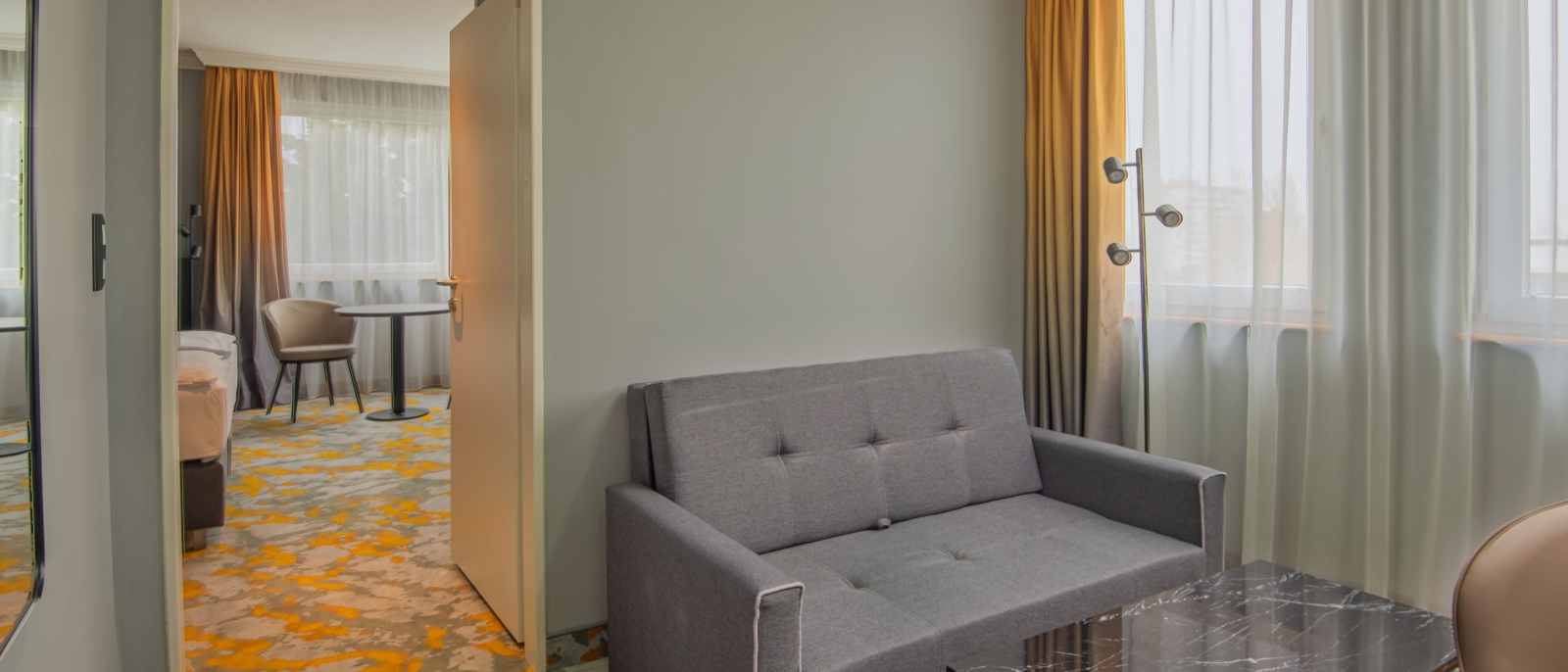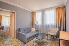 A kertre néző légkondicionált Business lakosztály 1 irodahelyiséggel és egy abból nyíló 1 sarok-hálószobával rendelkezik. A lakosztályban egy kétszemélyes ágy, egy kinyitható kanapéágy és egy kádas, hajszárítóval ellátott fürdőszoba van. A szobában síkképernyős, műholdas TV, minibár, tea- és kávéfőző, valamint ülősarok áll rendelkezésre.