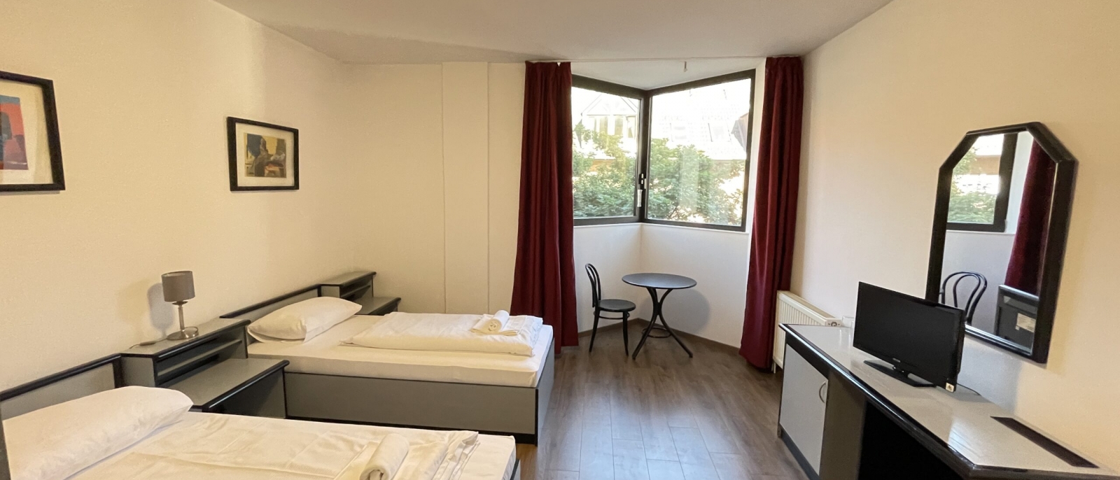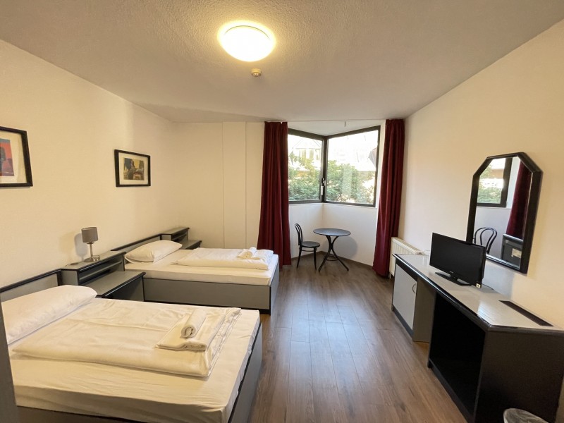 Napfényes szobák, kettő kényelmes ággyal. Nyugodt környezete miatt ideális üzleti vagy tanulmányi látogatásra, kikapcsolódni vágyóknak. A szobában íróasztal, széf, műholdtas TV található. A szobák frissen felújítottak, saját fürdőszobával.