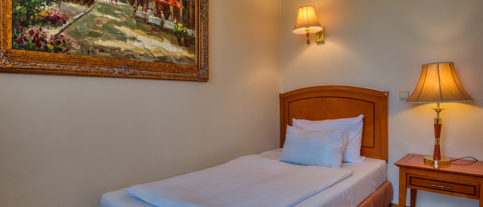 120 cm széles, kényelmes ágy, klímaberendezés, LCD televízió, telefon, minibár, vezetékes internet kapcsolat, WIFI, szobaszéf, zuhanyzós fürdőszoba bidével és hajszárítóval felszerelve.
