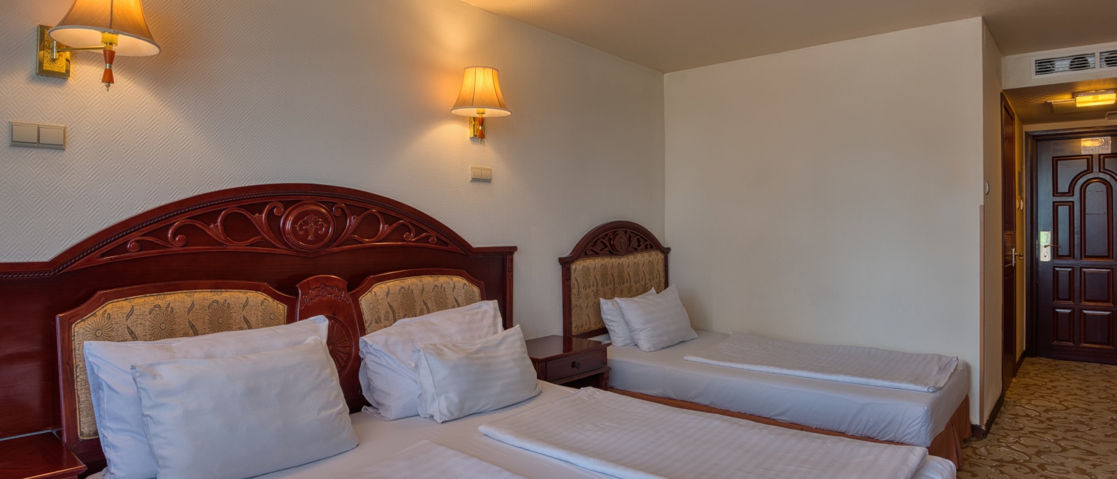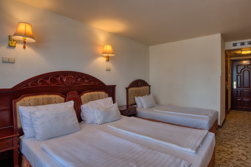 Nagyméretű, kényelmes összetolt- és különálló ágyak, klímaberendezés, LCD televízió, telefon, szobaszéf, minibár, fürdőkádas fürdőszoba bidével, hajszárítóval felszerelve.