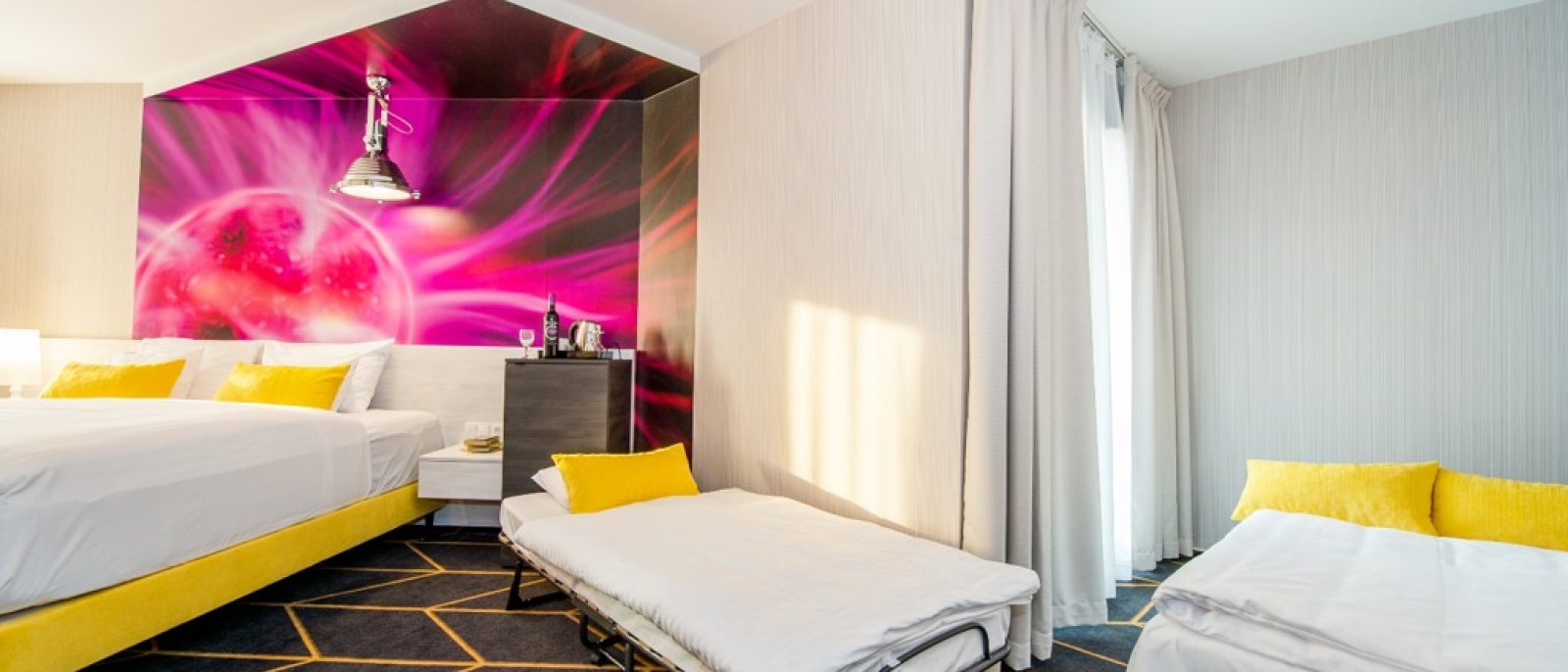 Üdvözlünk a Science Hotel Szeged különleges családi szobájában, ahol a nagy családok sem érzik magukat szűkös helyzetben! Ez a szoba olyan családoknak készült, akiknek már három csemetéje van, de nem szeretnének lemondani a közös szállodai élményről, és nem kívánnak két szobát vagy drága lakosztályt bérelni.