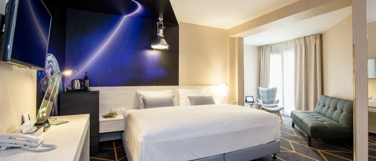 Üdvözlünk a Science Hotel Szeged Executive szobájában - a luxus és a tudomány találkozásában, ahol minden részletre odafigyelünk! Ez a szoba azoknak a pároknak készült, akik a prémium kényelemet keresik és szívesen élvezik a legmagasabb színvonalú szállodai szolgáltatásokat.