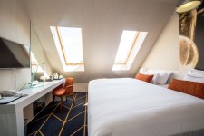 A szobák a tetőtérben helyezkednek el, ami egyedi hangulatot ad az ott tartózkodásnak. Nem kell azonban attól tartani, hogy szűkös lesz a hely - a szobák ugyanolyan elrendezéssel és design-nal rendelkeznek, mint a többi szobánk. A nagy ablakoknak köszönhetően bőséges természetes fény árad be, ami fokozza a tér érzetét és a kényelmet. A Standard szobáinkban 2 db 90x200cm es ágy található vagy pedig 1 db 180x200cm-es franciaágy.
